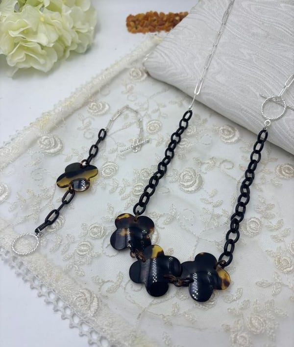 べっ甲ネックレス (シルバー) ブレスレットセット
